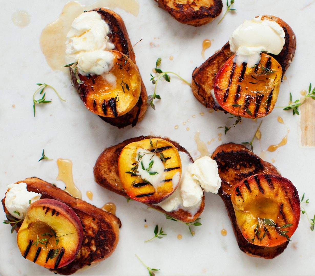 Aateloi köyhät ritarit vaihtamalla tuttu hillotäyte grillattuhin persikoihin ja rikastettuun kermavaahtoon.