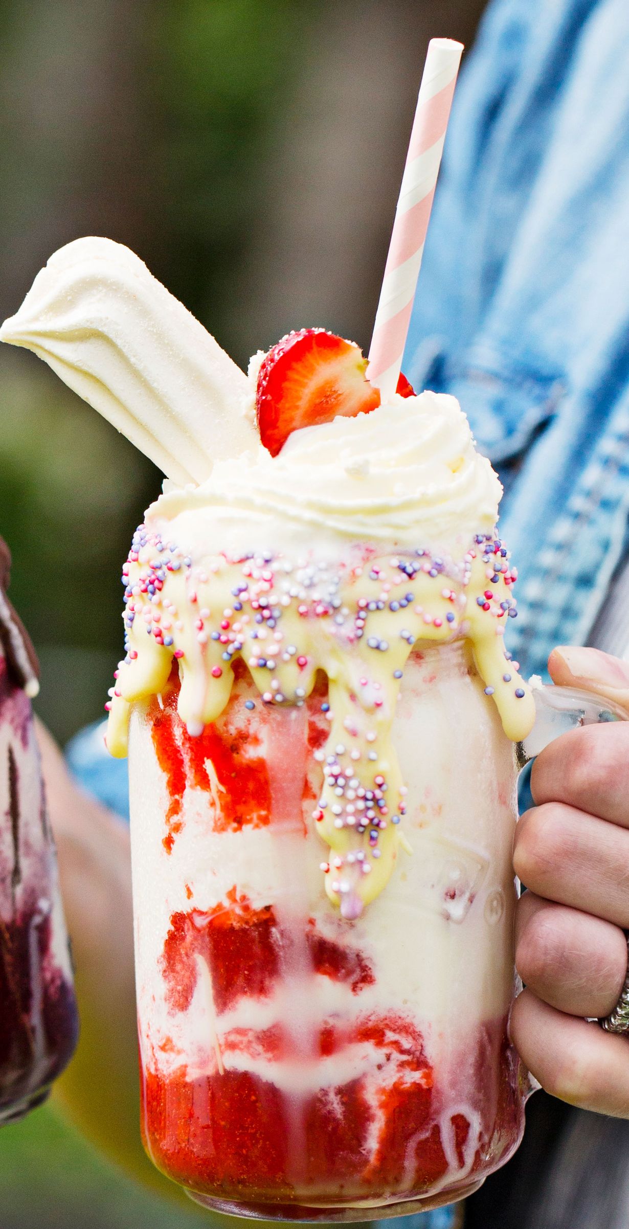 - Kokoa pirtelö. Valuta laseihin vuorotellen mansikkasosetta ja pirtelöä. Pursota päälle reilut keot kermavaahtoa ja koristele mansikkalohkoilla ja marengilla.