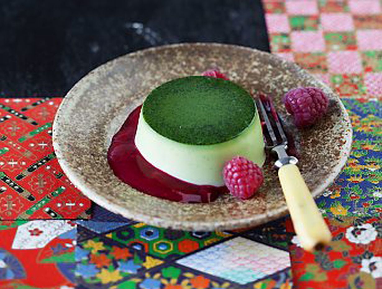 Italialainen klassikko saa uutta seuraa: matcha-teejauhe ja vadelmakastike tuovat pannacottaan keväistä keveyttä.