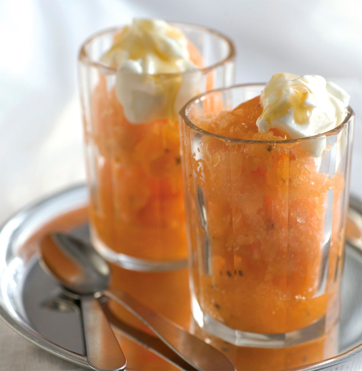 - Soseuta meloni monitoimikoneessa. Mausta sitruunamehulla, hunajalla ja hienonnetulla piparmintulla.