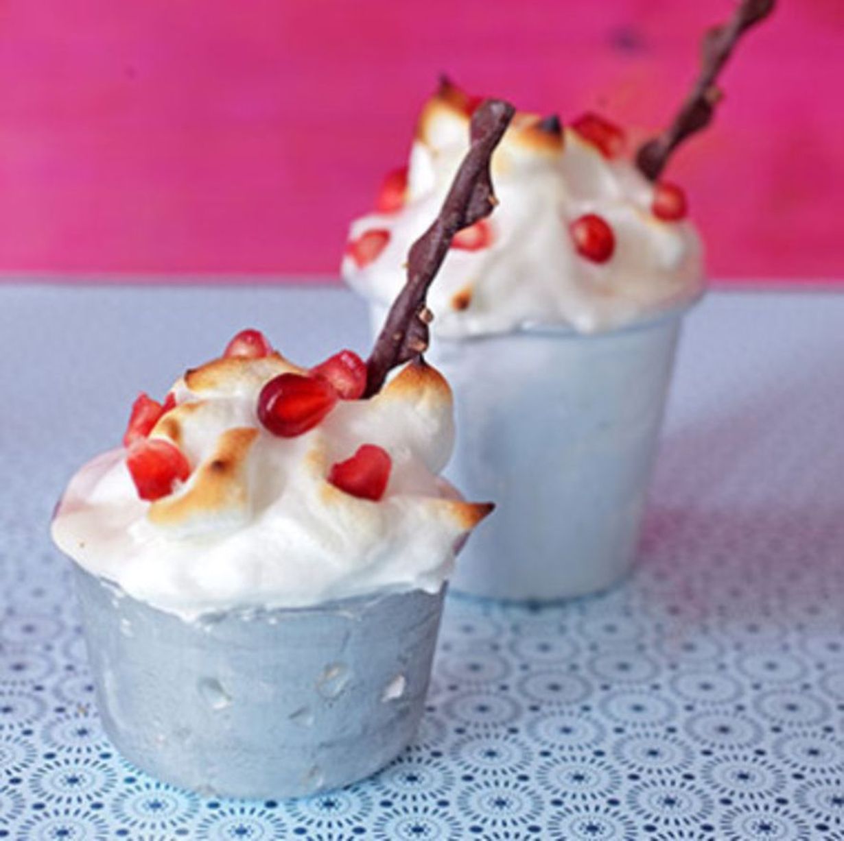 esimerkiksi granaattiomenan siemeniä ja suklaatikkuja koristeluun