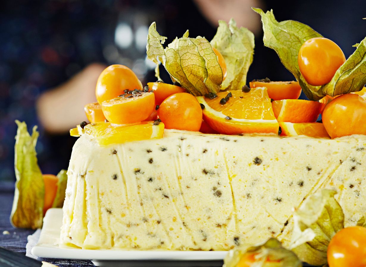 - Kumoa jäädyke suoraan pakastimesta tarjoiluvadille. Koristele ananaskirsikoilla, appelsiiniviipaleilla ja turkinpippurirouheella. Tarjoa heti.