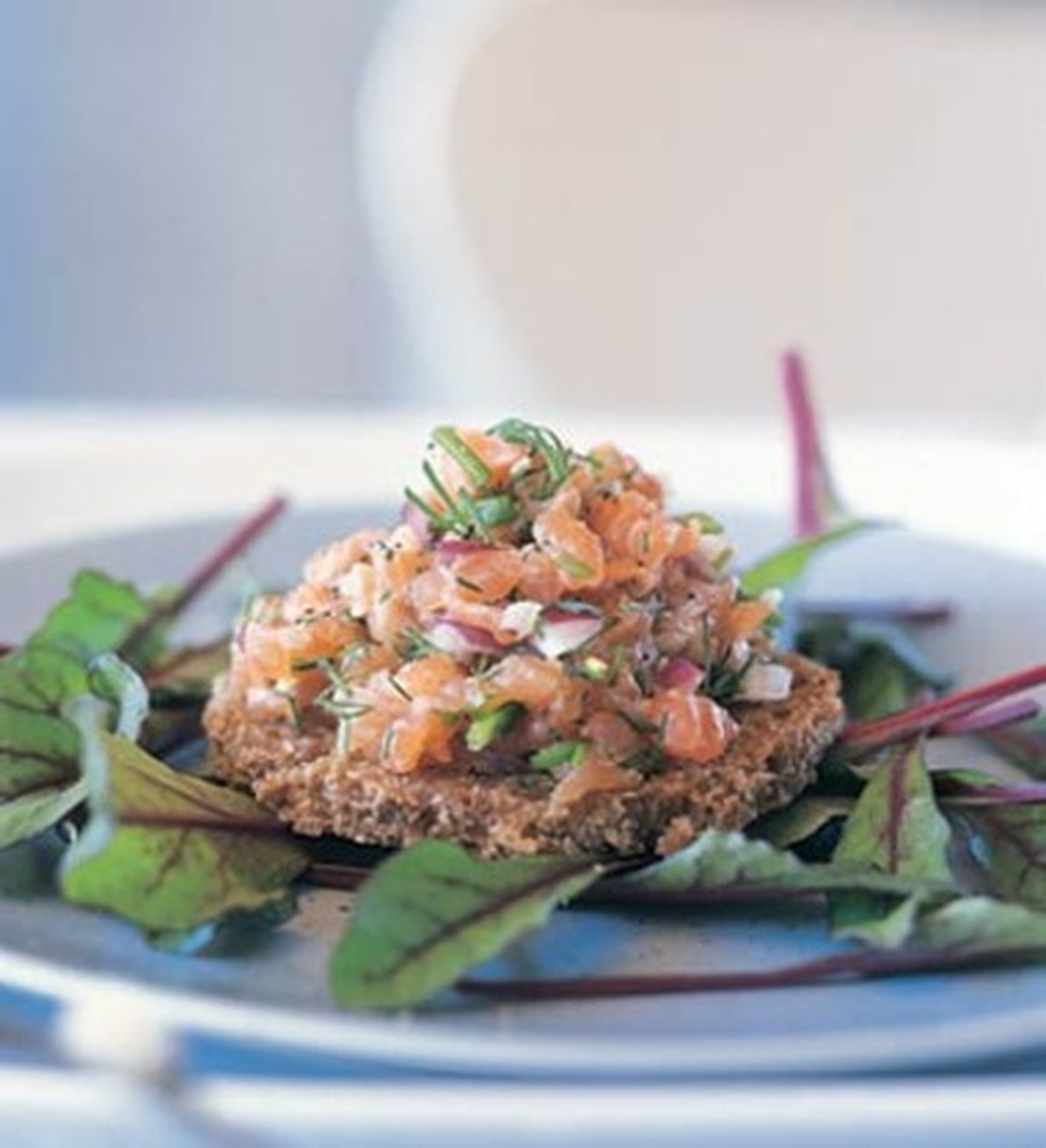 - Asettele salaattia lautasille ja kokoa annokset paahdettujen ruisleipien päälle.