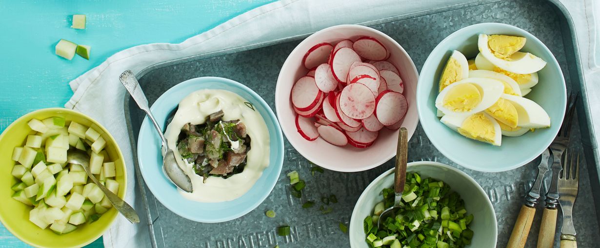 Tarjoa sillisalaatin ainekset eri kulhoissa, jotta jokainen voi koota mieleisensä annoksen.