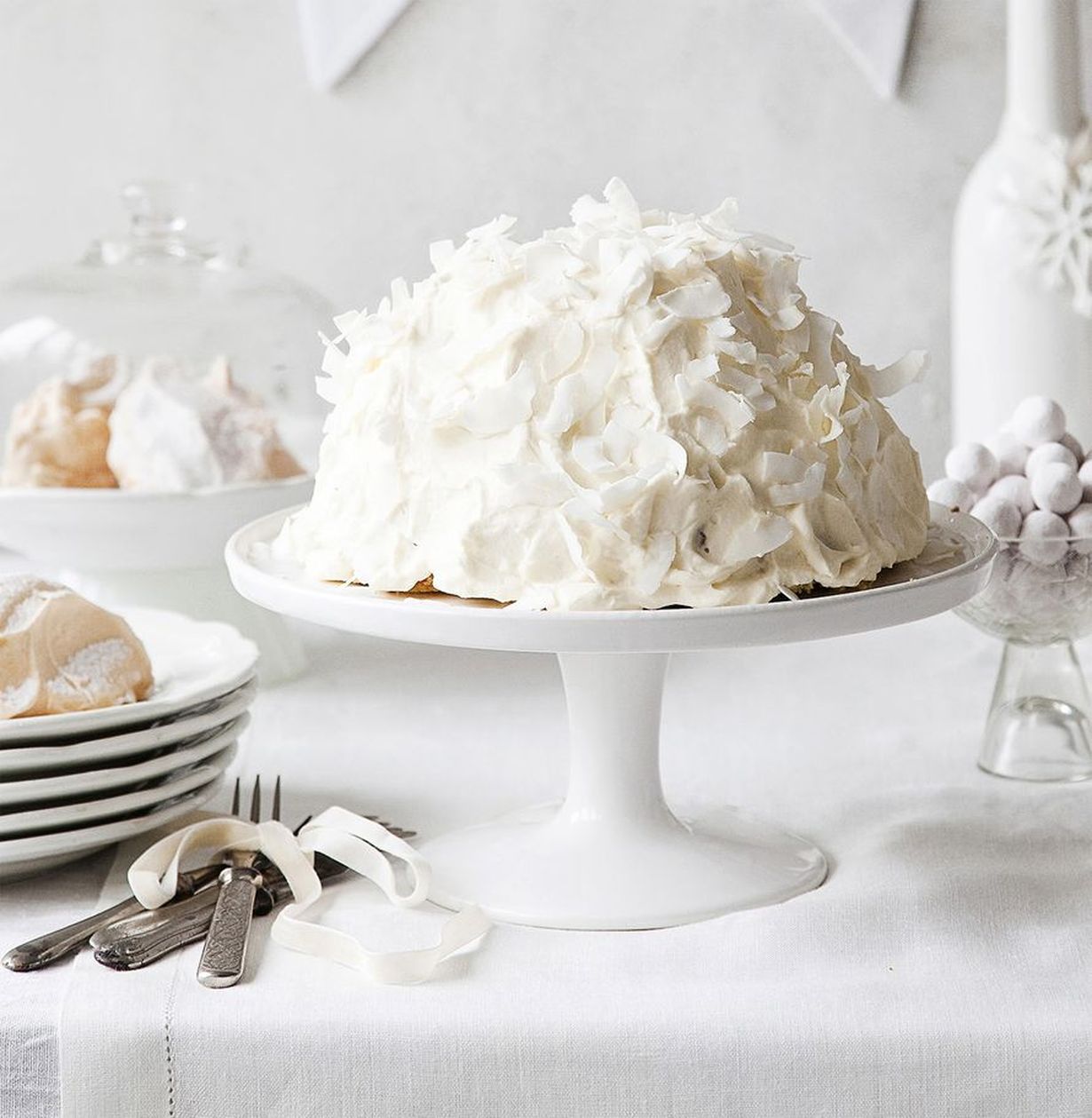 Lumipallokakku on kahvipöydän puheenaihe.