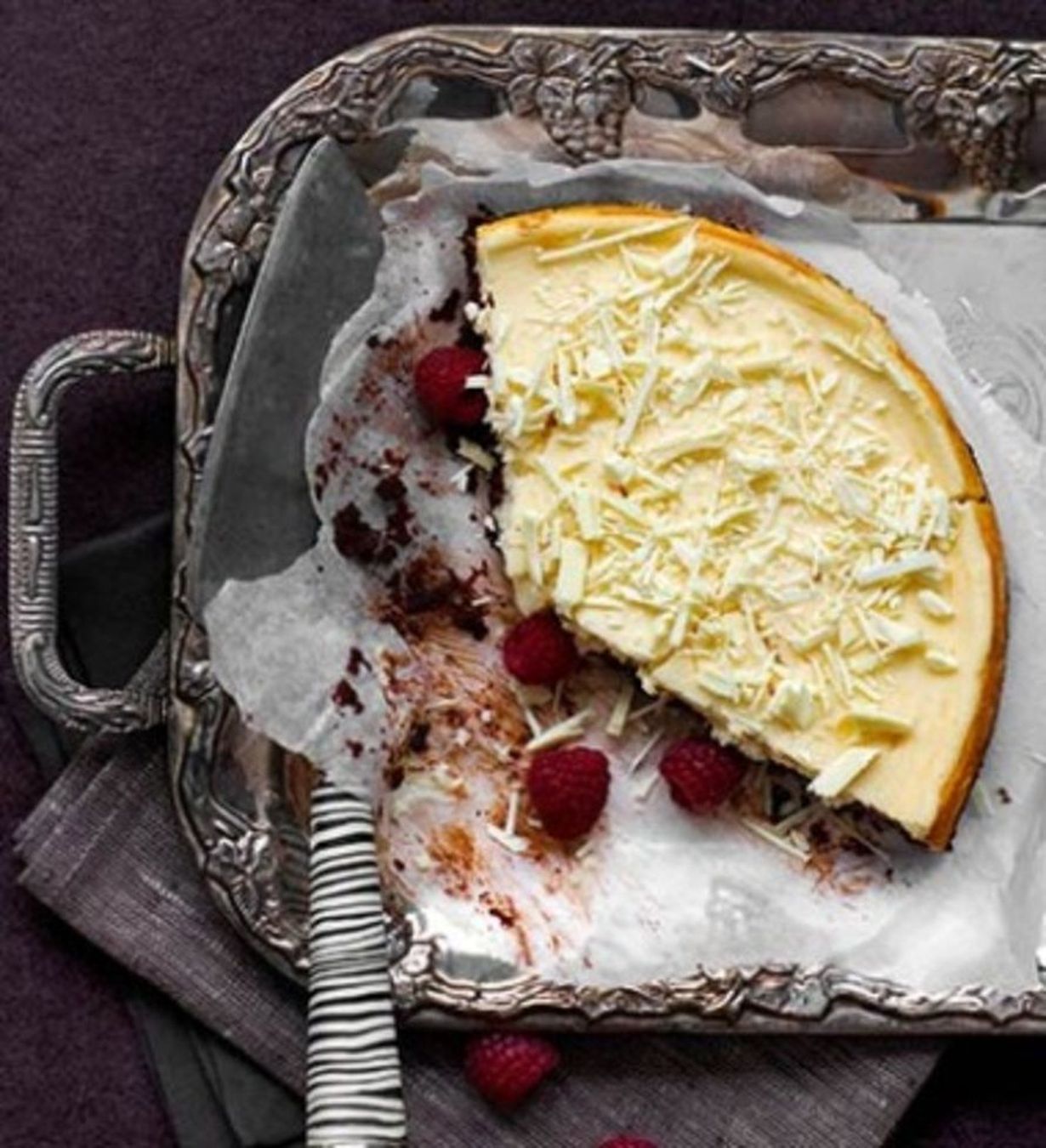 - Valmista sinä aikana juustokakkuseos. Sulata valkosuklaa vesihauteessa. Sekoita tuorejuusto ja ranskankerma notkeaksi. Lisää joukkoon munat yksi kerrallaan. Sekoita massaan sokeri, vaniljasokeri ja vaniljauutetta. Sekoita sulaan suklaaseen lusikallinen juustoseosta ja vasta sen jälkeen sekoita nopeasti suklaa lopun juustoseoksen joukkoon.