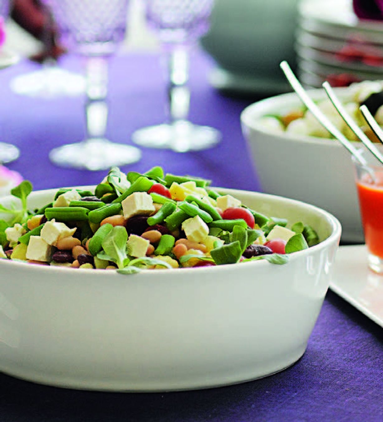 Vuonankaali ja kevätsipuli raikastavat papusalaatin.
