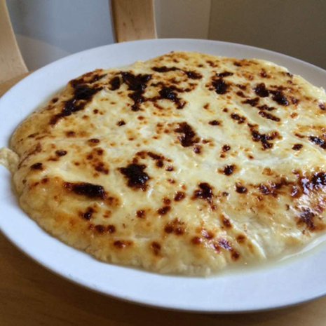 - Kaada juusto voideltuun, noin litran vetoiseen uunivuokaan. Paista 200 asteessa uunin keskitasolla, kunnes juusto on kauniin ruskeaa.
