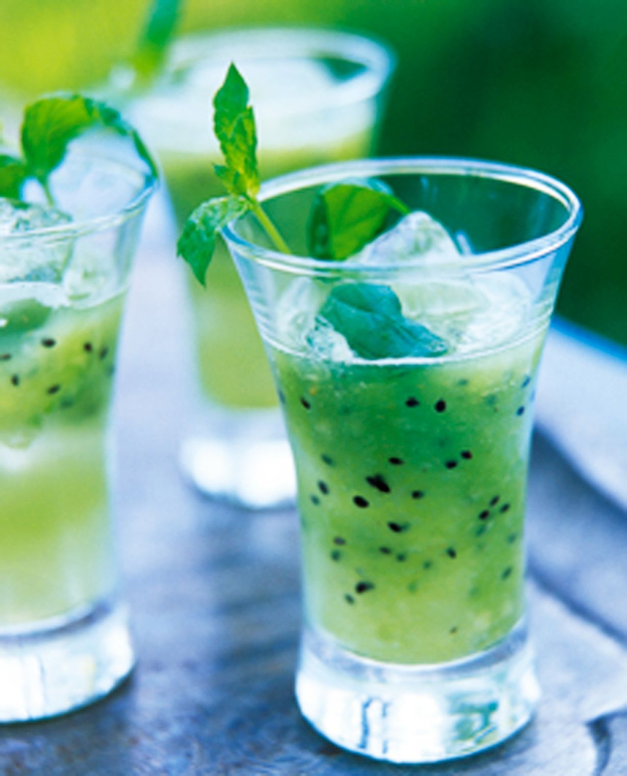 Laita jäämurska ja juoma jäähdytettyihin laseihin. Koristele mintunoksilla.