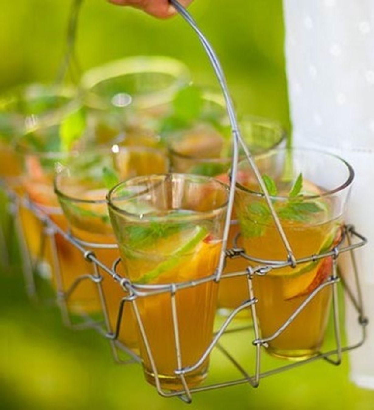 Alkoholiton jääteebooli maistuu kaikille: lisää teehen vain virvoitusjuomaa, sitruunaa ja limeä, sokeria ja minttua.