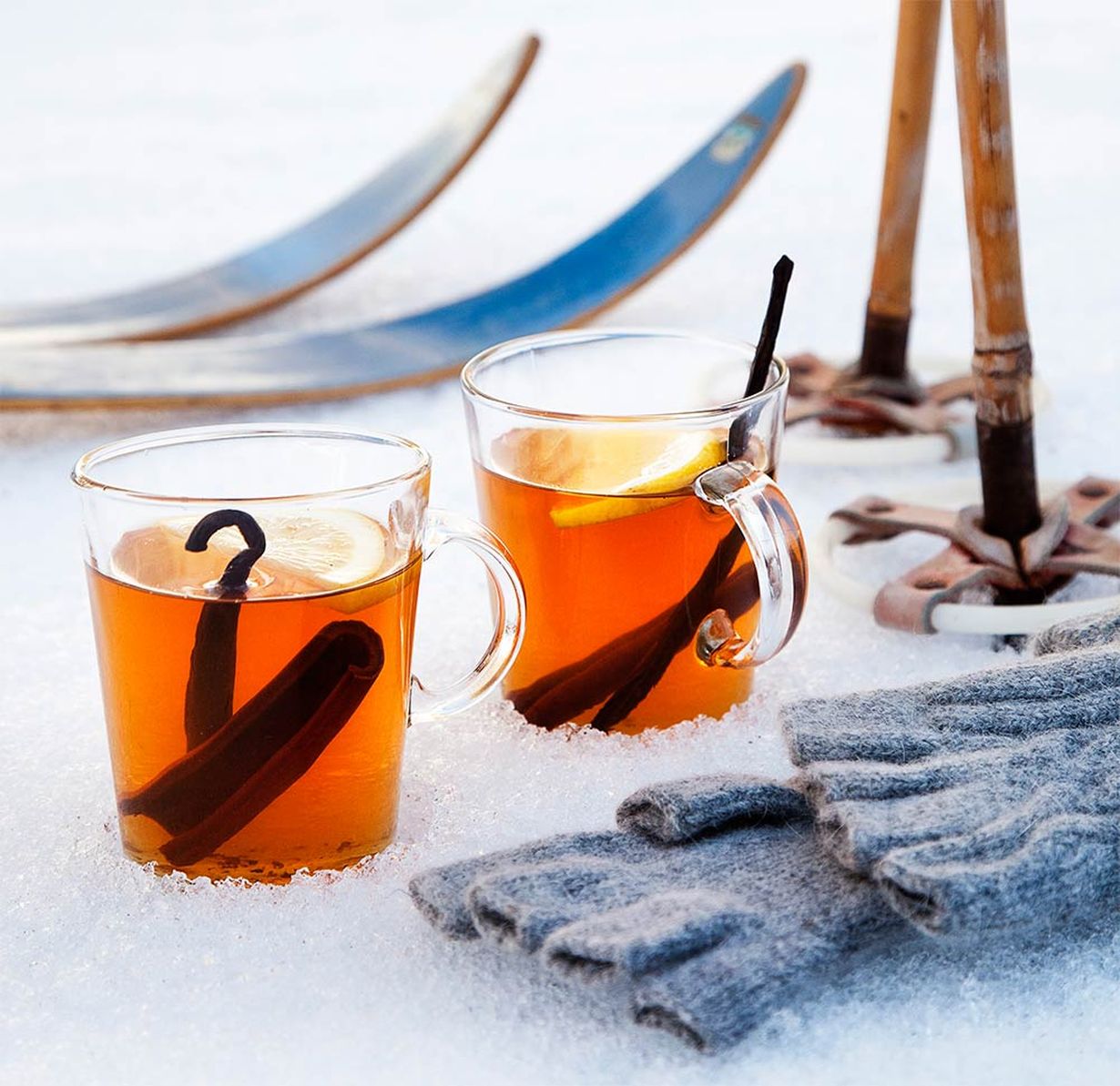Kuuma omenajuoma lämmittää suloisesti talvipiknikillä. Siivilöi juoma esilämmitettyyn termospulloon.