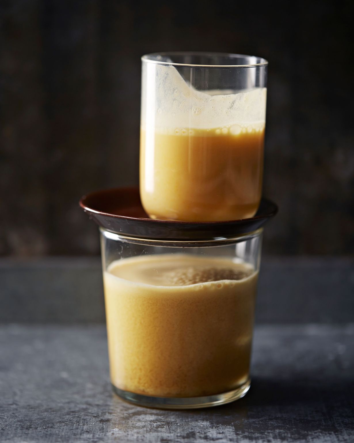 1. Sekoita ainekset tehosekoittimessa tai ravistaen pullossa.