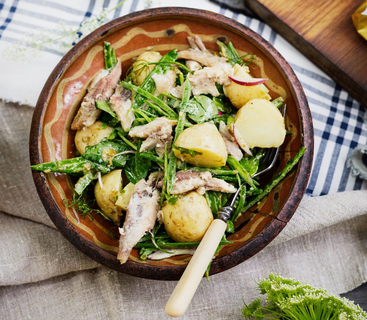 Jättämällä savukalan pois saat hyvän peruspottusalaatin kaikkien kesäruokien kaveriksi.
