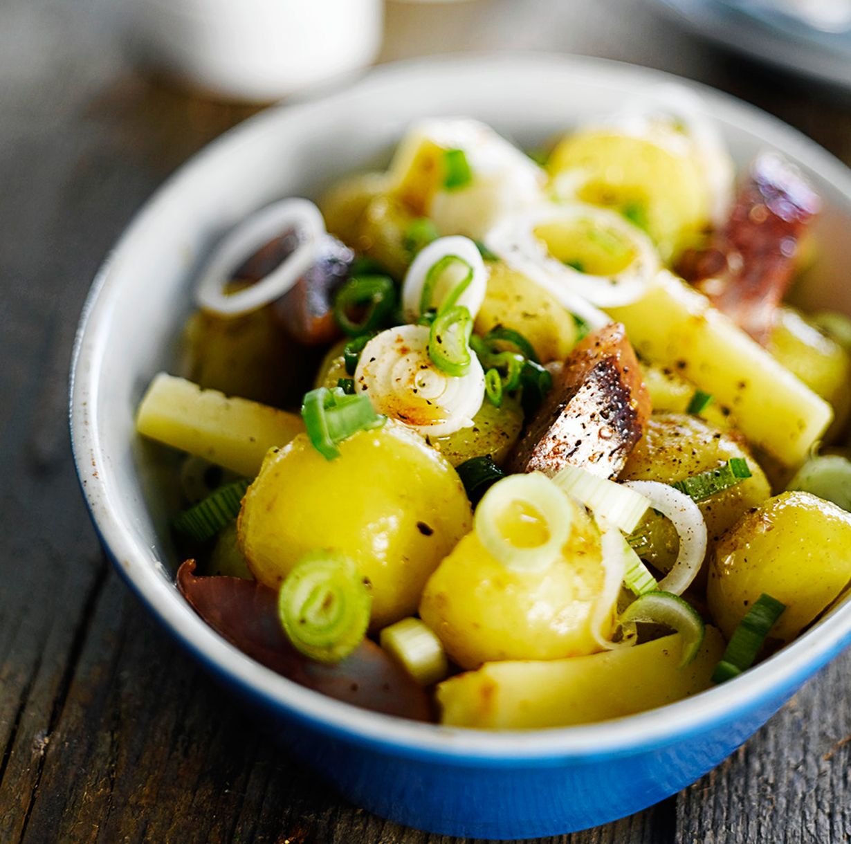 - Raaputa perunat puhtaiksi ja keitä suolalla maustetussa vedessä kypsiksi. Kaada vesi pois.