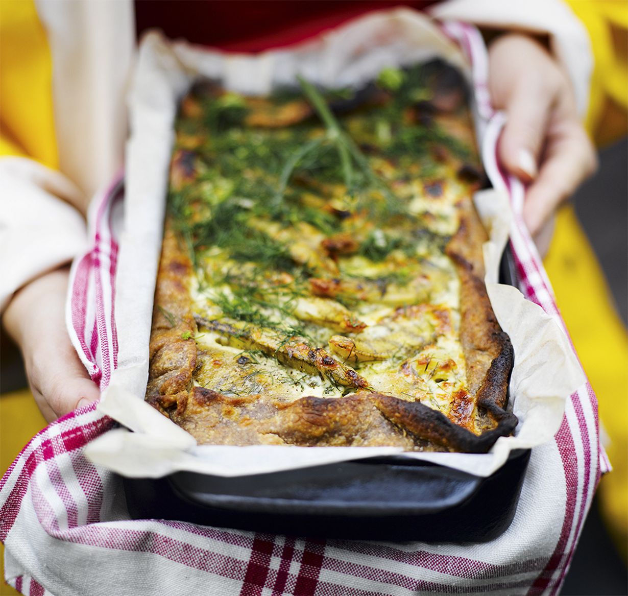 - Hienonna piirakan pinnalle runsaasti tilliä ja rouhi vielä päälle valkopippuria.