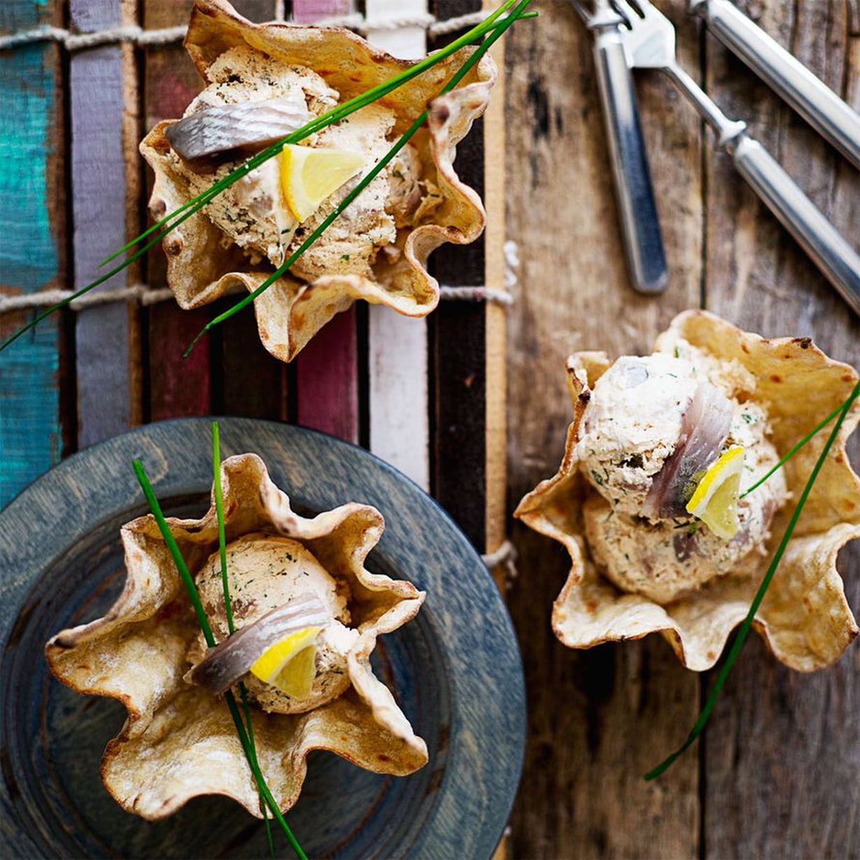 Sillijäätelön voi tarjota kaupan valmiista näkkileipäkuorukoista.