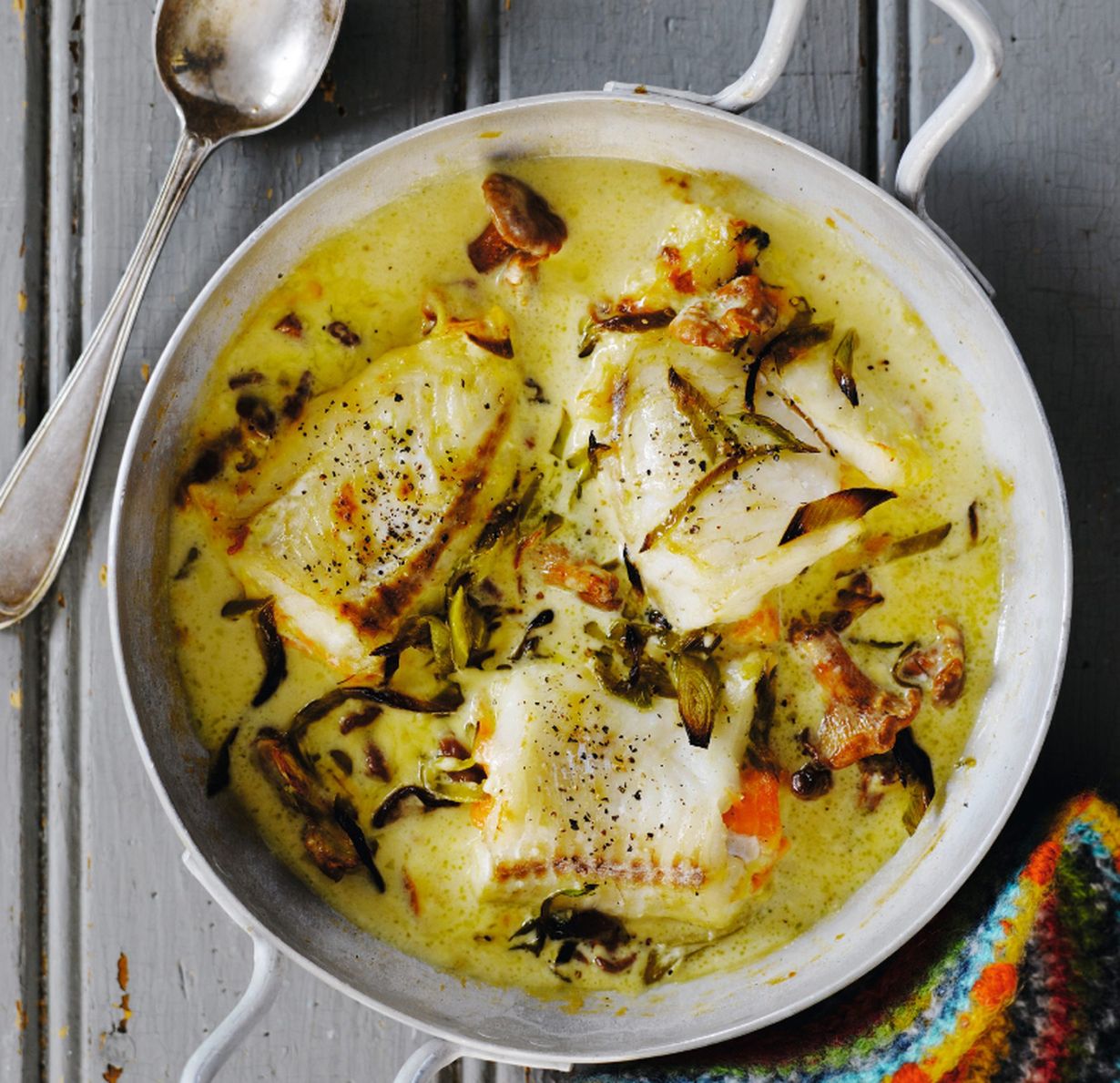 - Paista 175 asteessa 20–25 minuuttia tai kunnes kala on kypsää. Mausta kala juuri ennen tarjoilua sitruunamehulla. Tarjoa keitettyjen perunoiden ja salaatin kanssa.