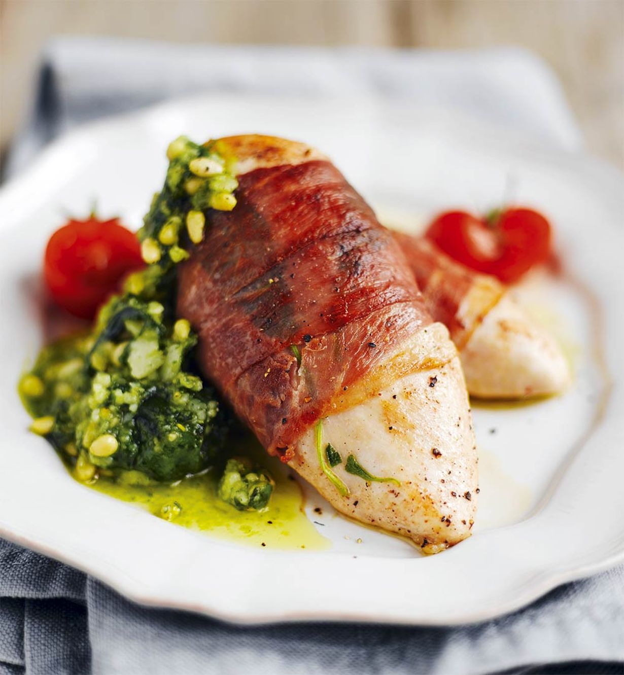 - Tarjoa saltimbocca karkean peston ja vihreän salaatin kanssa.