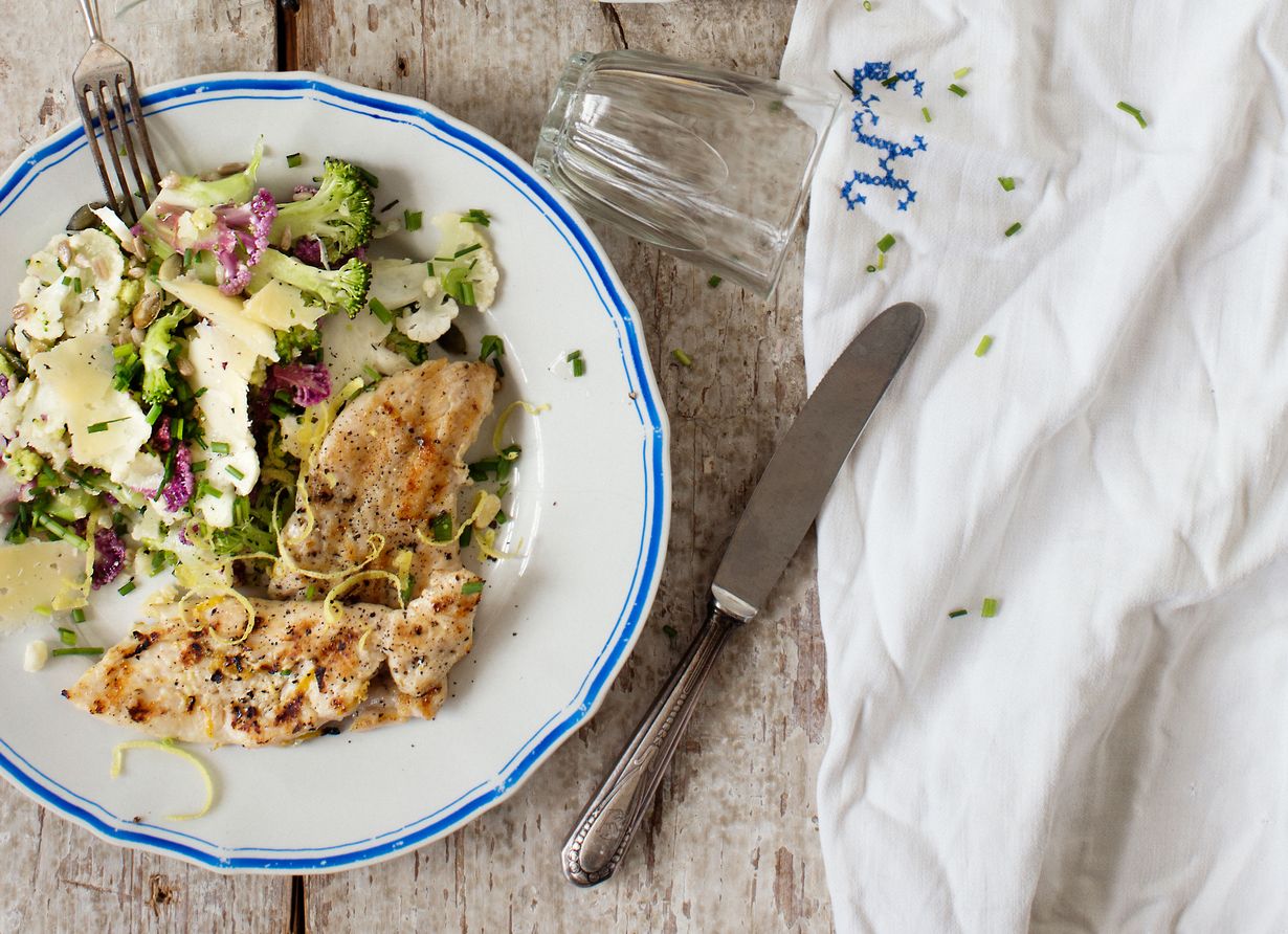 Kukkakaalisalaatti ja grillattu sitruunabroileri