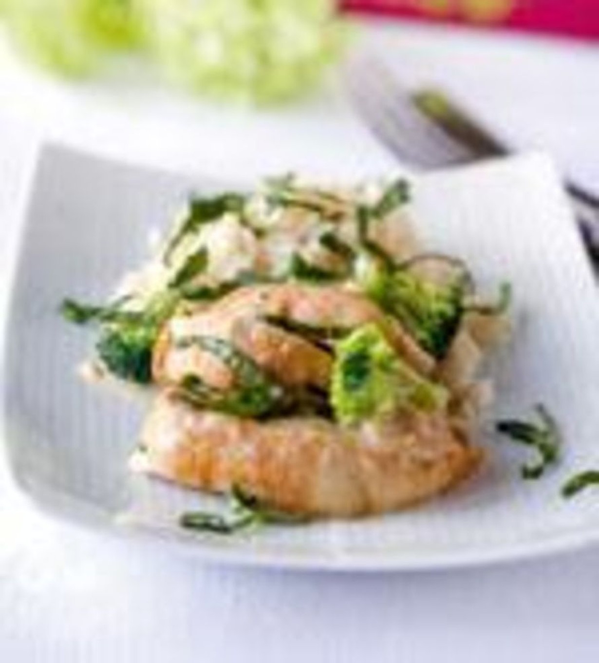 - Lisää pannulle liemikuutio ja ruokakerma. Anna ruuan hautua kannen alla 10 minuuttia. Lisää pannulle jäiset parsakaalit ja mausta. Kypsennä ruokaa vielä 5-10 minuuttia tai kunnes parsakaalit ovat kypsiä.