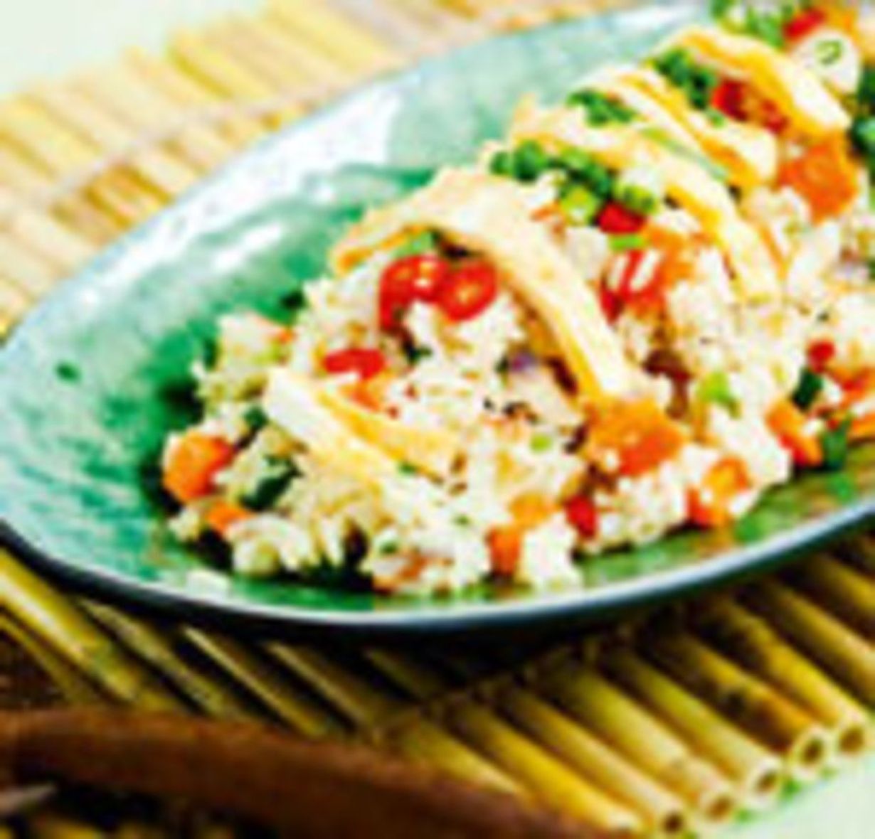 - Levitä pinnalle munakassuikaleet ja loput chilisilpusta. Tarjoa heti.
