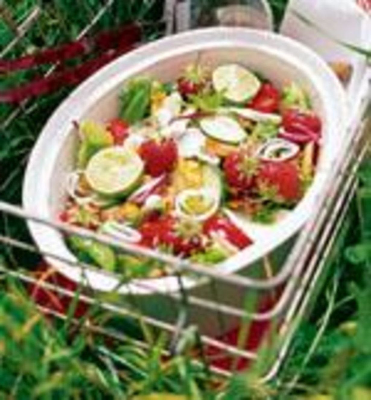 - Sekoita kaikki salaattiaineet yhteen isossa kulhossa.