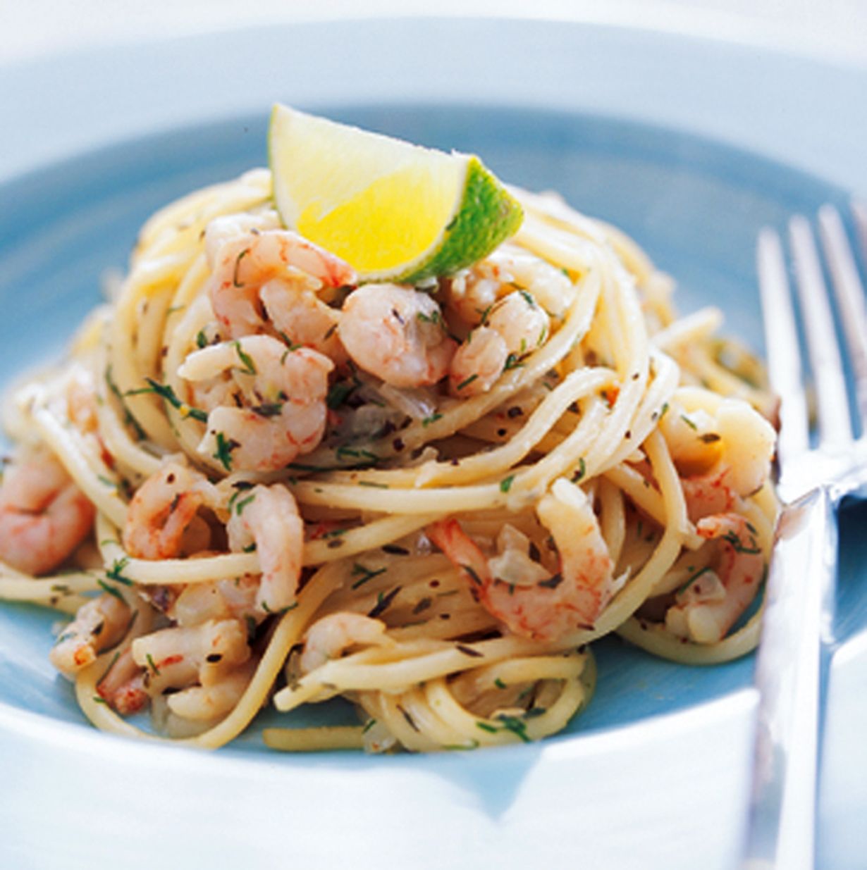 Kääntele sekaan lopuksi sulaneet ja valutetut katkaravut. Kuumenna kiehuvaksi, mutta älä keitä enää, jotta ravut eivät sitkisty. Ripottele päälle tillisilppu ja tarjoa kastike pastan kanssa.