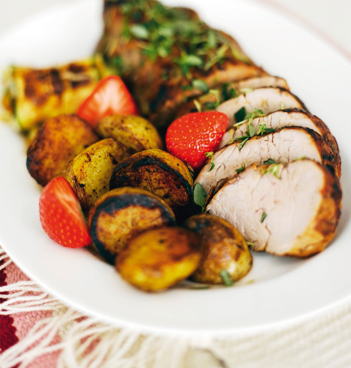 Ripottele pinnalle vielä hieman suolaa grillaamisen jälkeen ja halutessasi mustapippuria. Tarjoa paistettujen perunoiden, kesäkurpitsarullien ja vihersalaatin kanssa.