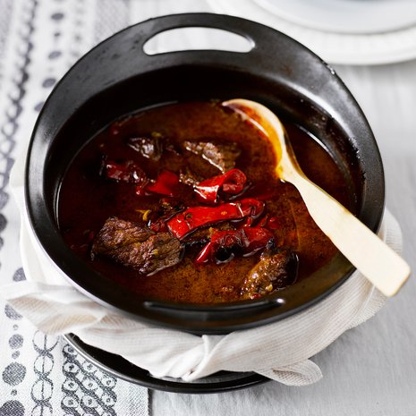 - Siivilöi kastike tiheän siivilän läpi ja laita takaisin kattilaan. Lisää joukkoon sitruunan mehu. Mausta pippurilla ja tarvittaessa suolalla.