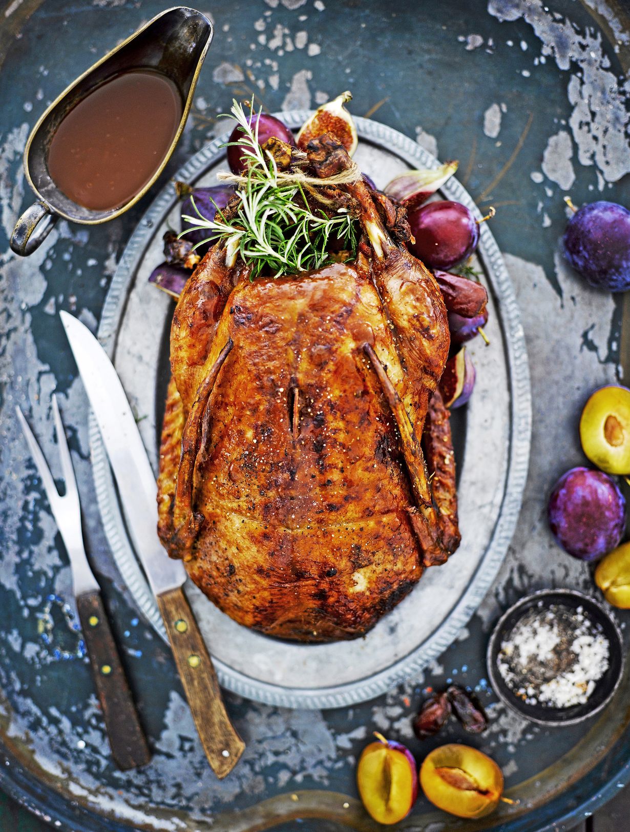 Ankka on joulupöydän näyttävin tarjottava! Viikuna-sherrykastike kruunaa paahdetun ankan.