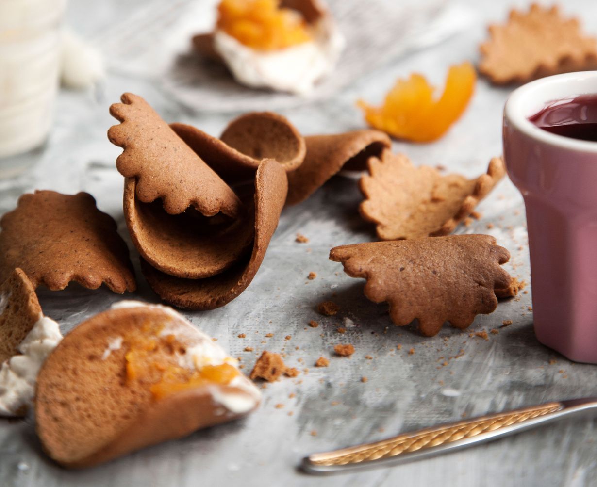 Vesipohjainen piparitaikina sopii sipseihin, jotka maistuvat glögin kanssa. Dippaa sipsit vuohenjuustovaahtoon ja mausteiseen persimonhillokkeeseen.