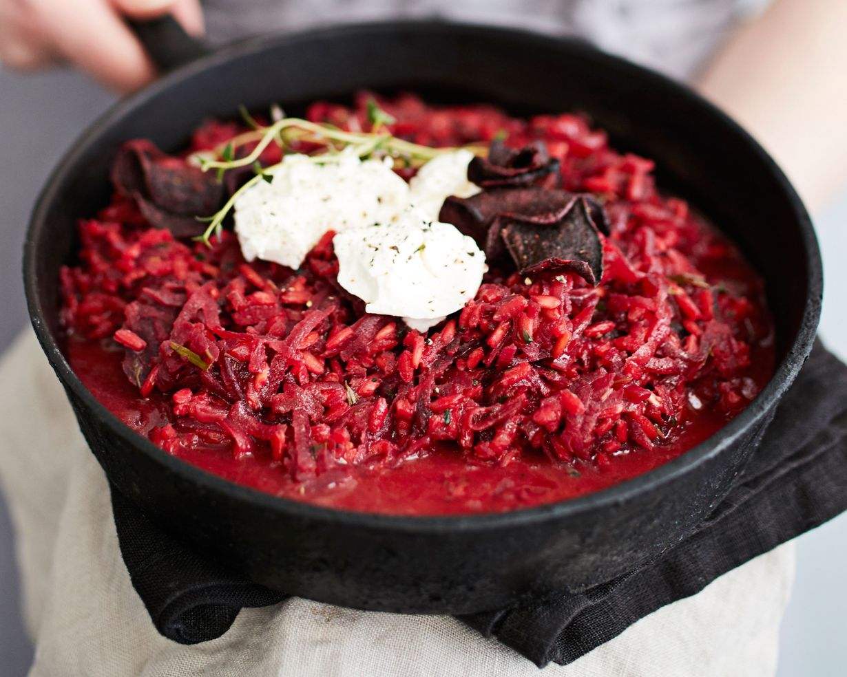 Hienoksi raastettu punajuuri porisee kypsäksi samassa ajassa kuin riisi. Siksi helppo punajuuririsotto on kauden lempiruoka!