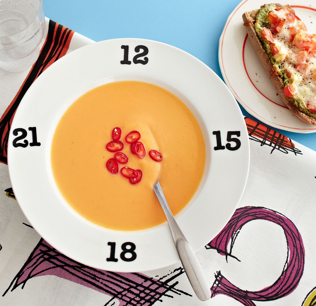 Keitto on suloisen samettista ja siinä on myös aavistus tulisuutta. Leipä täydentää sopan kunnon ateriaksi.