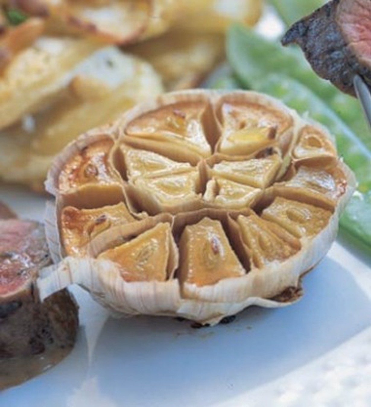 Halkaise kolme kunnollisen kokoista valkosipulia poikkisuuntaan kahtia. Sipaise kunkin leikkauspinta voilla (tai öljyllä) ja valuta päälle hieman hunajaa. Kypsennä 225 asteessa noin 20 minuuttia.
