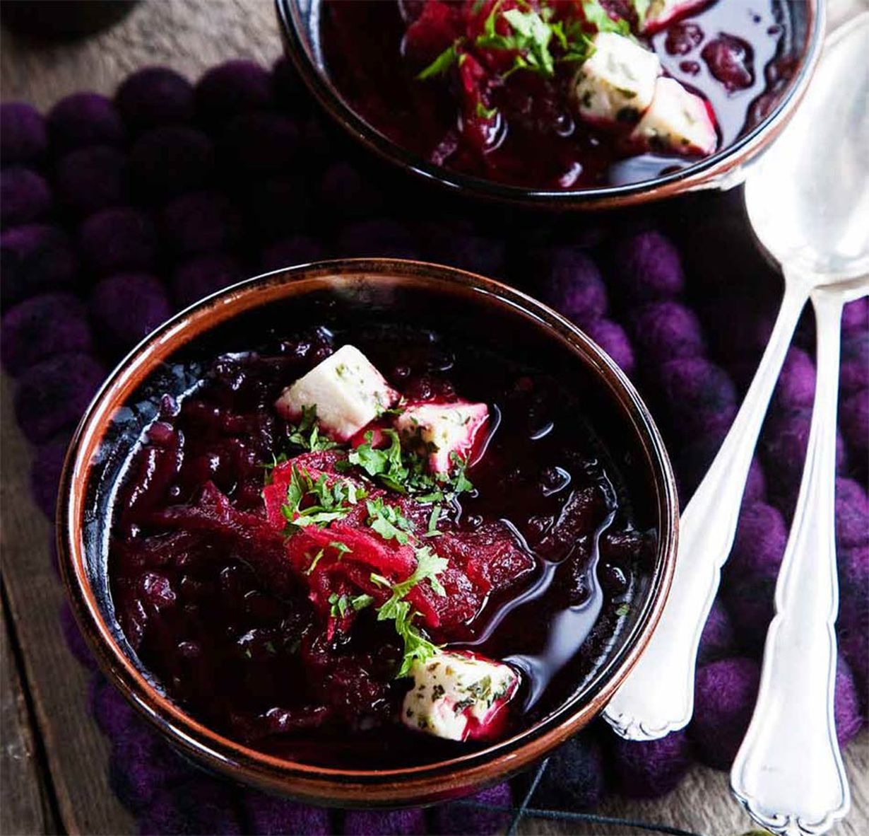 Borssikeiton pääraaka-aine on punajuuri. Muut ainekset voit soveltaa mielesi mukaan.