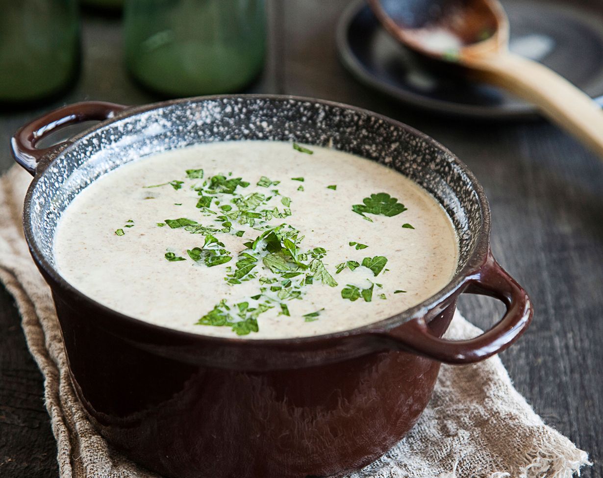 Vinkki! Kaada muutama pisara tryffeliöljyä keiton päälle juuri ennen tarjoilua. Voit myös paistaa muutaman kauniin sienen pannulla ja koristella keiton niillä. Keiton kanssa maistuu myös nokare smetanaa.