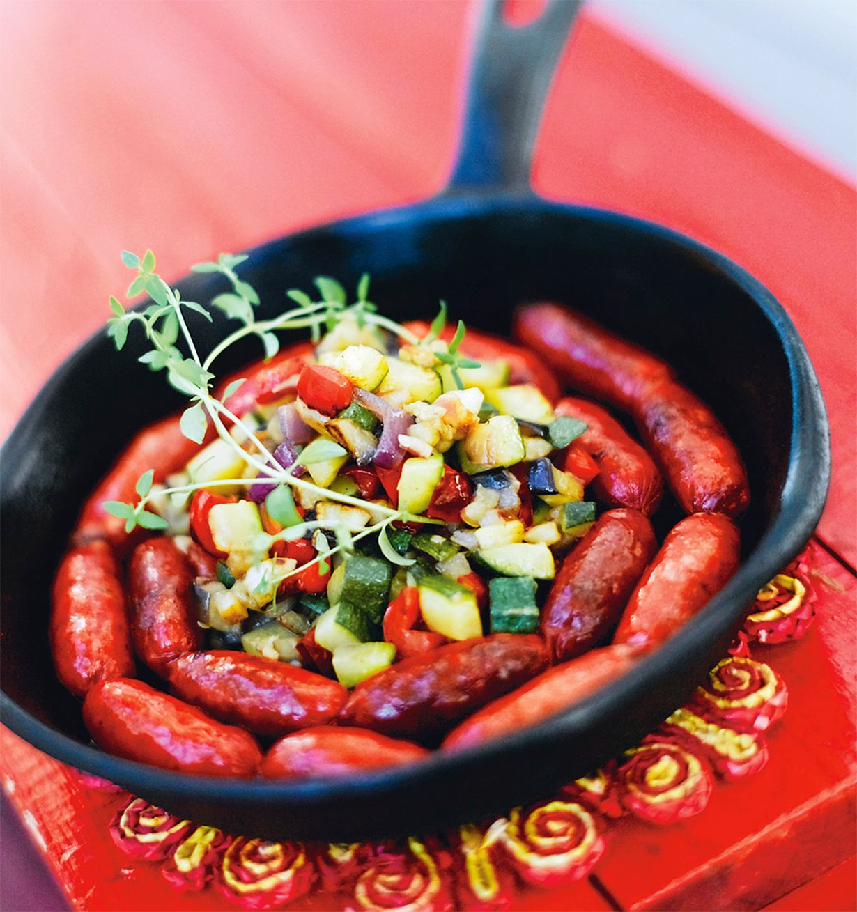 Tarjoa kasvishöystöä grillimakkaran lisukkeena.