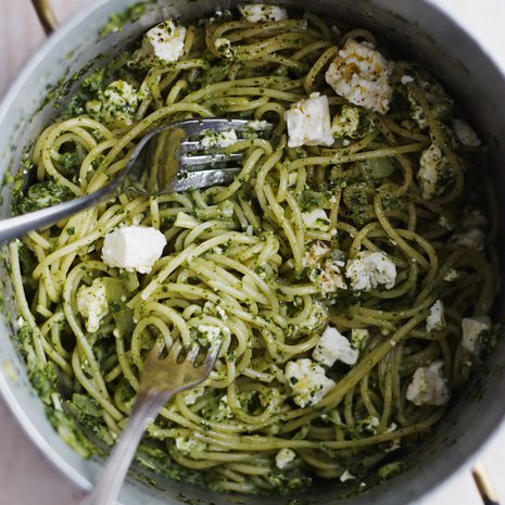 Vinkki! Jos et tarjoa ruokaa saman tien, pyöräytä pastan joukkoon tilkka oliiviöljyä, niin pasta pysyy irtonaisena.