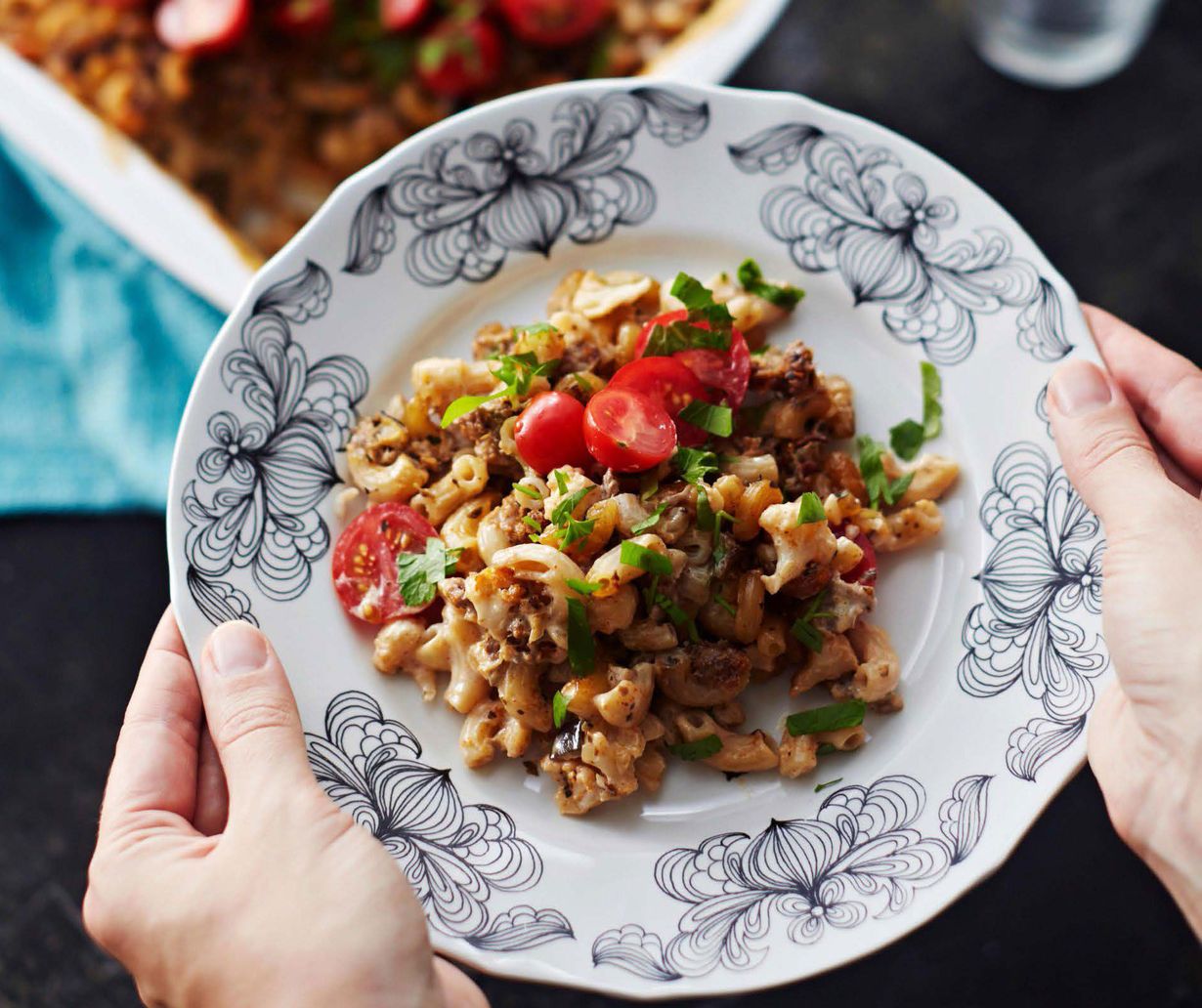 Makaronilaatikossa jauhelihan uusi vaihtoehto uppoaa nirsoimmallekin. Kuvan makaronilaatikko on tehty härkiksestä, mutta siihen sopivat myös nyhtökaura ja quorn-rouhe.