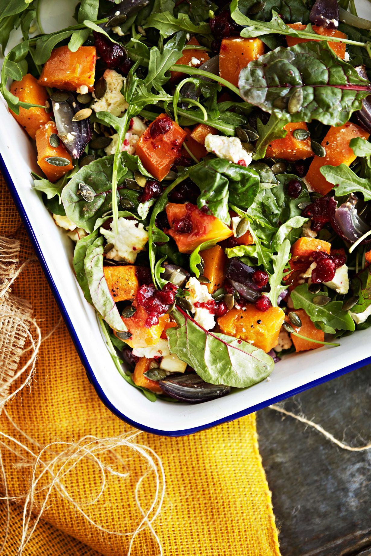 Paahdettu kurpitsasalaatti ja karpalokastike