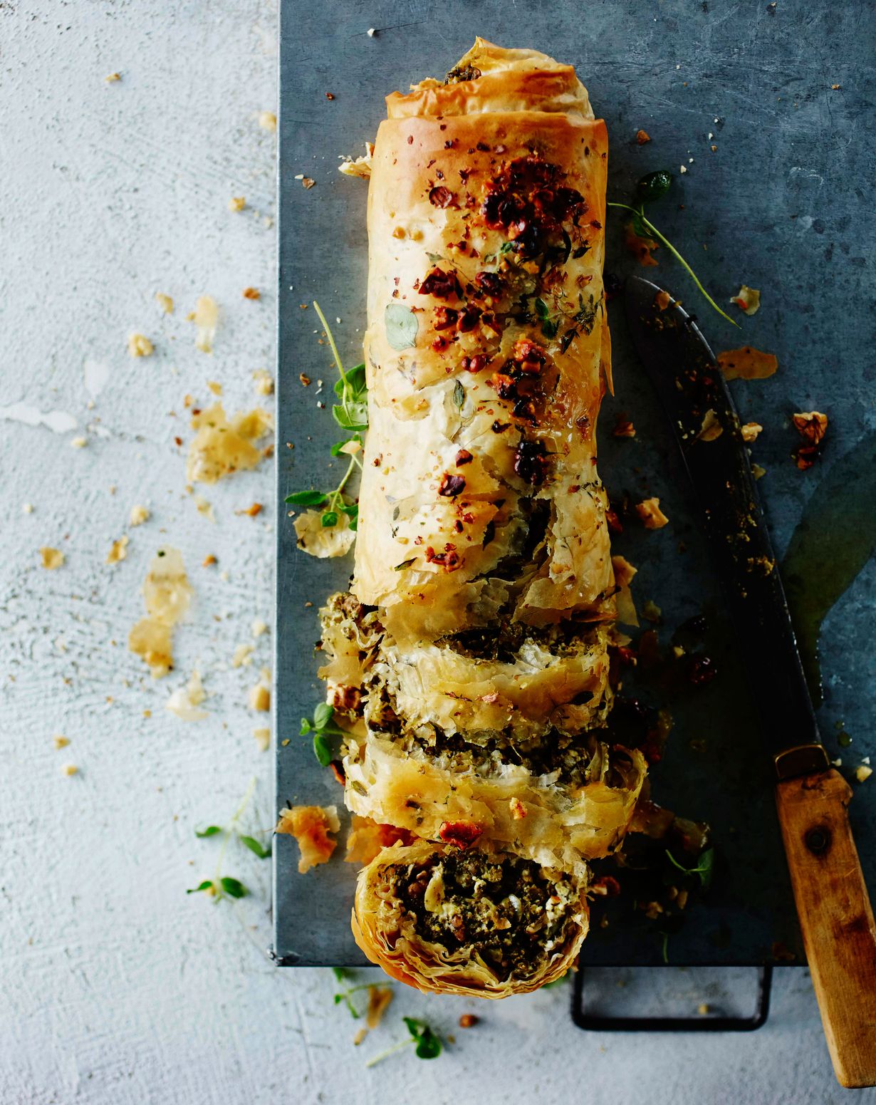 Onko feta-pinaattipiirakka suosikkisi? Kokeile sitä uudessa rapeassa muodossa. Struudeli näyttää huippukokin luomukselta, mutta on oikeasti helppo tehdä.