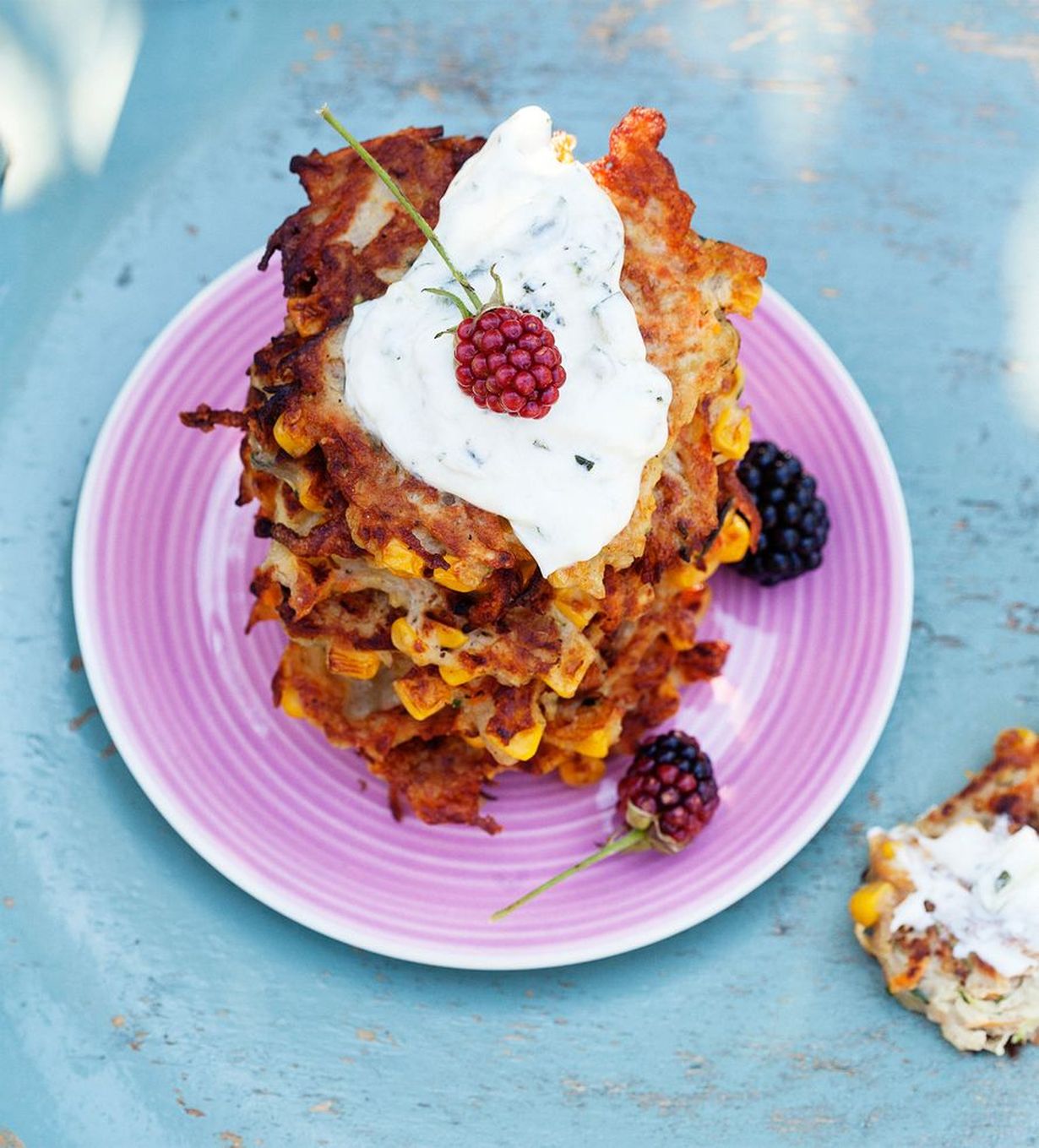 Juurespihveihin voi upottaa mitä vaan juureksia oman makunsa mukaan. Makea maissi antaa kivan makulisän.