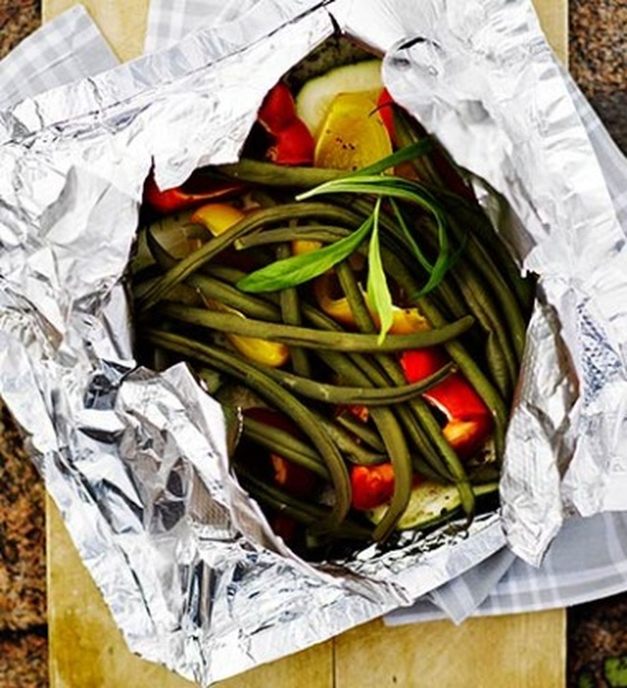 Vinkki! Jos käytät savustinta, varmista, etteivät kasvikset pääse putoamaan ritilän läpi. Nuotiosavustuksessa kasviksille riittää 10 minuuttia kovassa lämmössä.