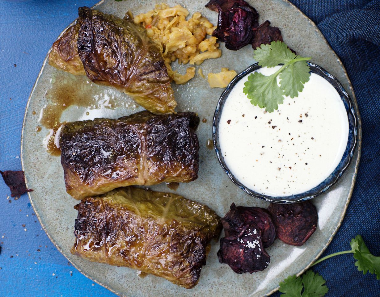 Kurttukaalikääryleiden täyte on mehevästi vege. Näitä kannattaa rullata kerralla isompi satsi.