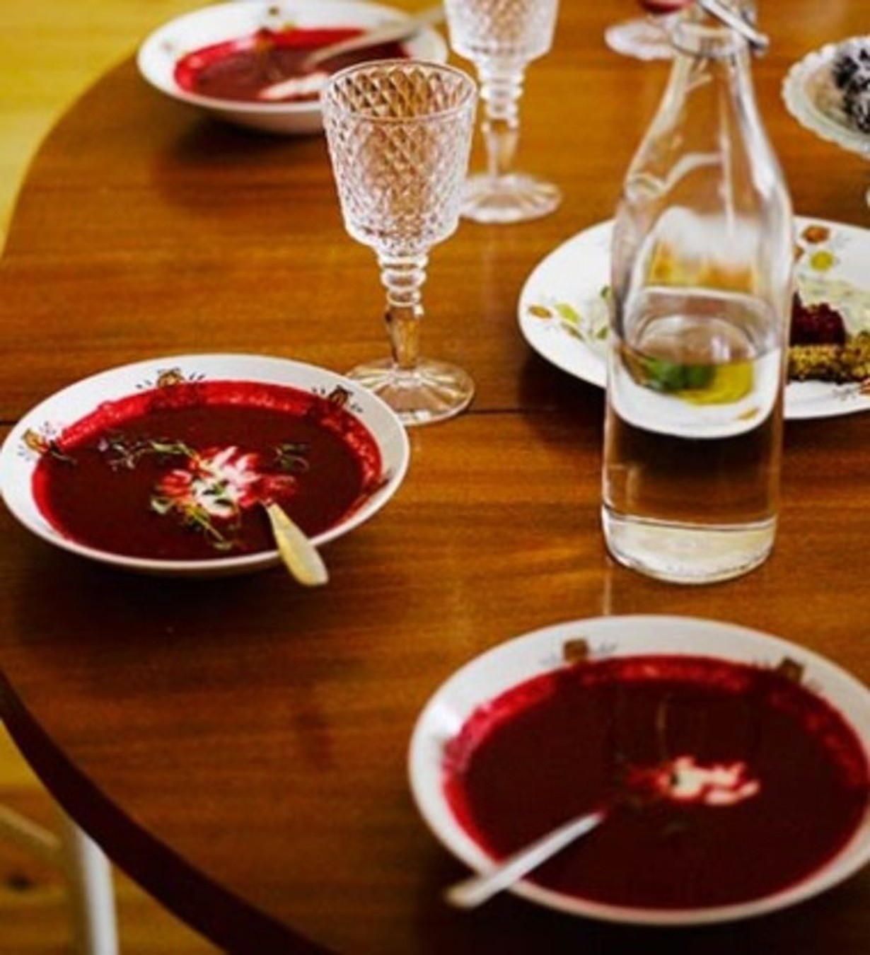 3. Soseuta keitto sauvasekoittimella. Mausta suolalla ja yrttisuolalla. Lisää paahdetut punajuurikuutiot ja hienonnettu thaibasilika. Kiehauta ja nauti cashew-ranskankerman kanssa.