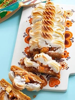 Lämmin hedelmäsalaatti ja mantelivaahto