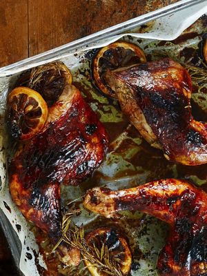 Omena-rosmariinibroileri ja sitruunamarinoidut juurekset