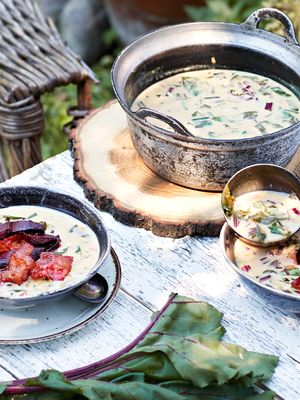 Sametinpehmeä punajuuri-maa-artisokkakeitto