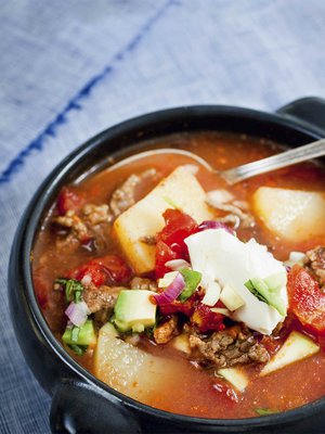 Lempeän paprikainen gulassi nautitaan keittona juuresten kera