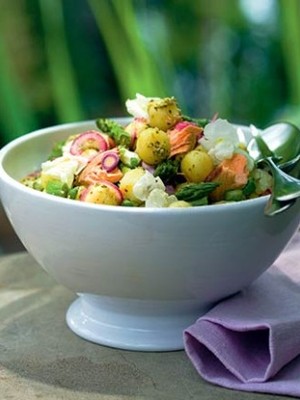 Sokerisuolattu lohi ja keltainen kaalisalaatti